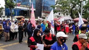kabarindoku.com,MEDAN- Sekitar ribuan pekerja yang tergabung dalam 45 Serikat Pekerja/Serikat Buruh (SP/SB) Sumatera Utara menggelar aksi demonstrasi di depan Kantor Gubernur Sumut pada tanggal 3 November 2025. Massa aksi, yang mengatasnamakan Komite Aksi Upah (KAU), berkumpul di Lapangan Merdeka Jalan Pulau Pinang sekitar pukul 12.30 WIB sebelum bergerak menuju kantor gubernuran di Medan.